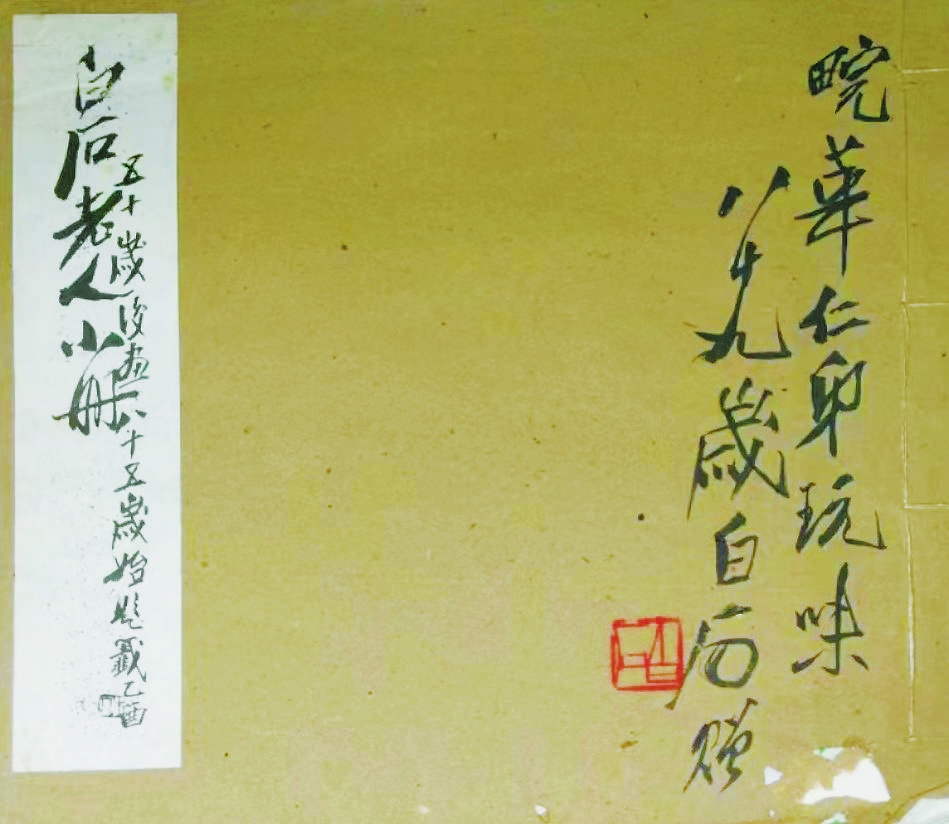 有意思的是,《北行琐记》所述,餐后他们送白石老人回家,又在齐宅小坐,齐白石拿出几本印刷的画谱与印谱,题字分送众人。写给梅兰芳那本,题畹华的“畹”字时,在“田”字旁加上一个“完”字,许写道“边上有人想告诉他错了,被我暗中止住,我觉得很有意思,因为字典上没有这样的一个字,可以当作纪念。等我空一点还想做一个小跋,写到那本画谱上去”。而今北京护国寺街梅兰芳纪念馆的藏书中,恰有一本齐白石题赠的画册,封面“畹”字正写作“田”加“完”。两相印证,可见许文所记,确有其事。
