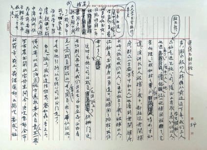 回忆录最初采用口述录音方式,1976年3月24日首次录音时,茅盾“手持话筒,靠在卧榻上”,儿子沈霜操作设备,儿媳陈小曼记录。但乌镇口音和即兴讲述的琐碎,导致录音稿“只有骨头,没有血肉”。茅盾对此极不满意,遂以八十一岁高龄重起炉灶,在整理稿上亲笔修订补充。这种特殊创作方式形成了现存手稿的独特面貌,既有茅盾清秀的瘦金体墨迹,也有家人代笔的工整誊抄,还有不同色笔墨迹的批注增删。