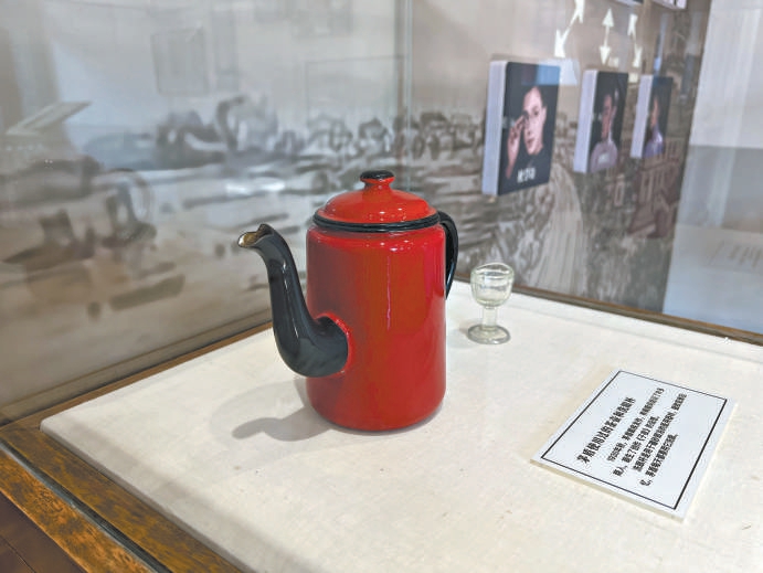 写回忆录用过的录音机与写作时用来洗眼睛的水壶。 中国现代文学馆存