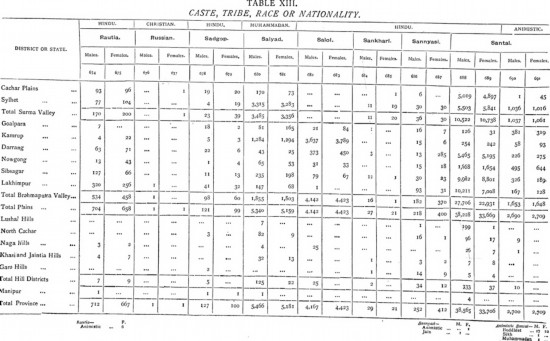 人口统计中关于阶级与种族的表格,1901年